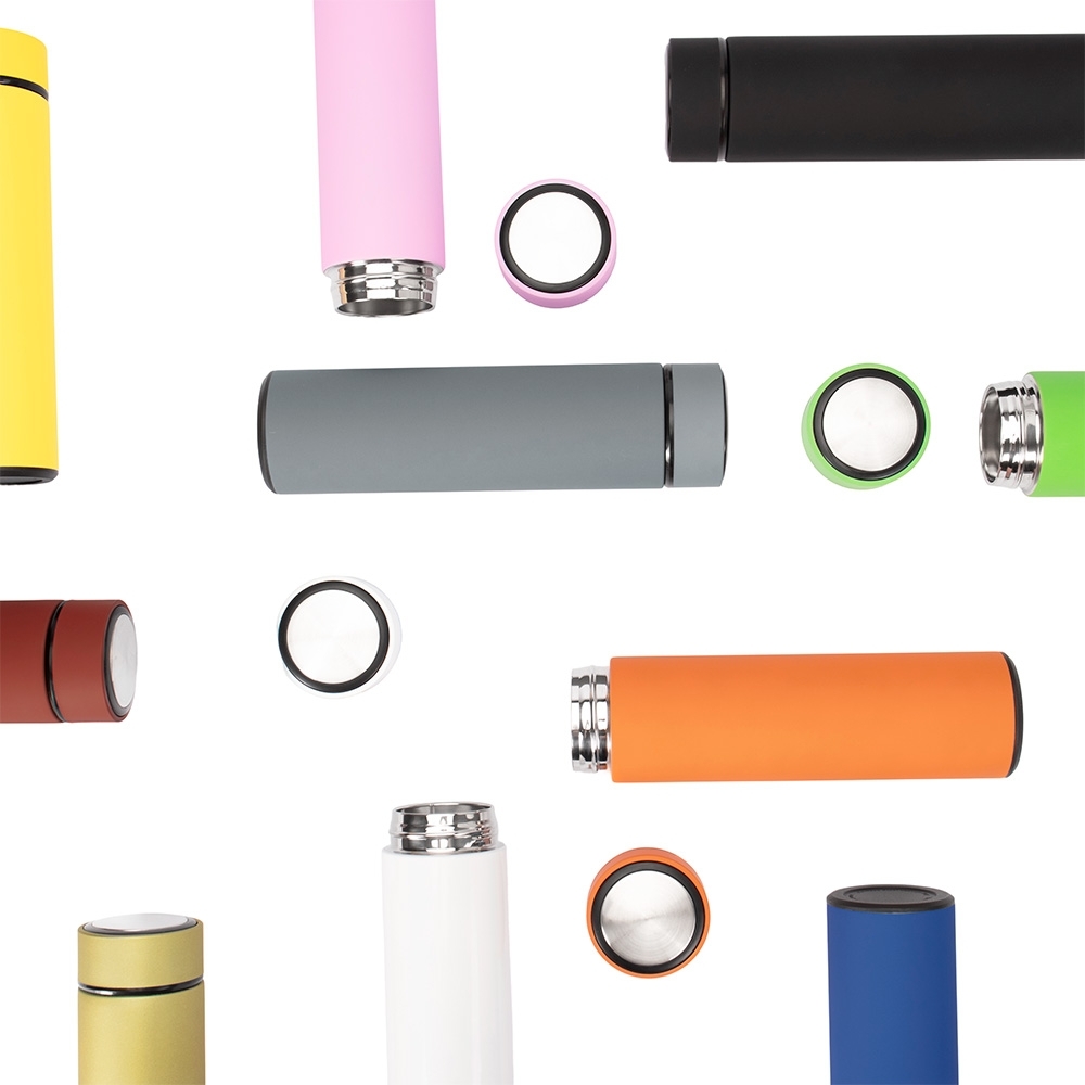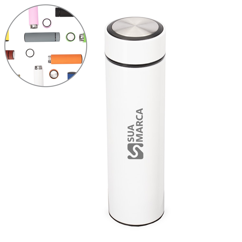 Uma garrafa térmica com capacidade máxima de 500ml. Feita em aço inox, conta com tampa rosqueável e revestimento externo emborrachado que facilita a pegada. Possui parede dupla e isolamento a vácuo, o que permite conservar a temperatura de líquidos por mais tempo. Acompanha infusor em inox.