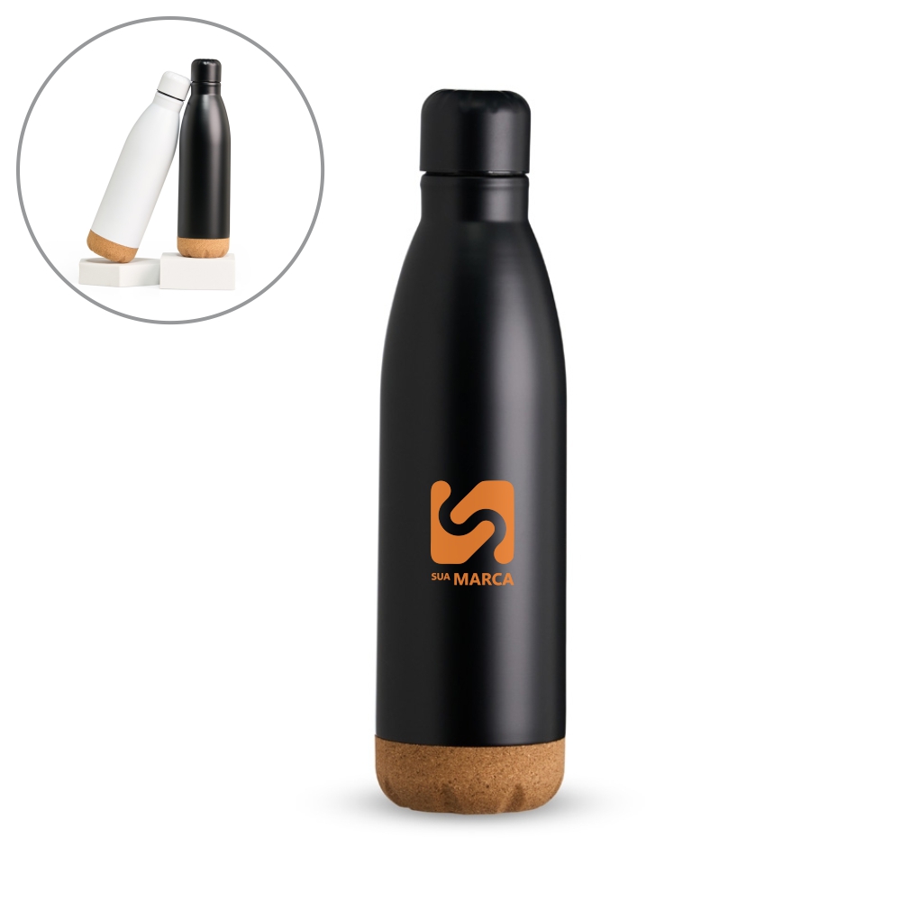 Garrafa Térmica feita em inox com capacidade de 500ml com detalhe em cortiça.