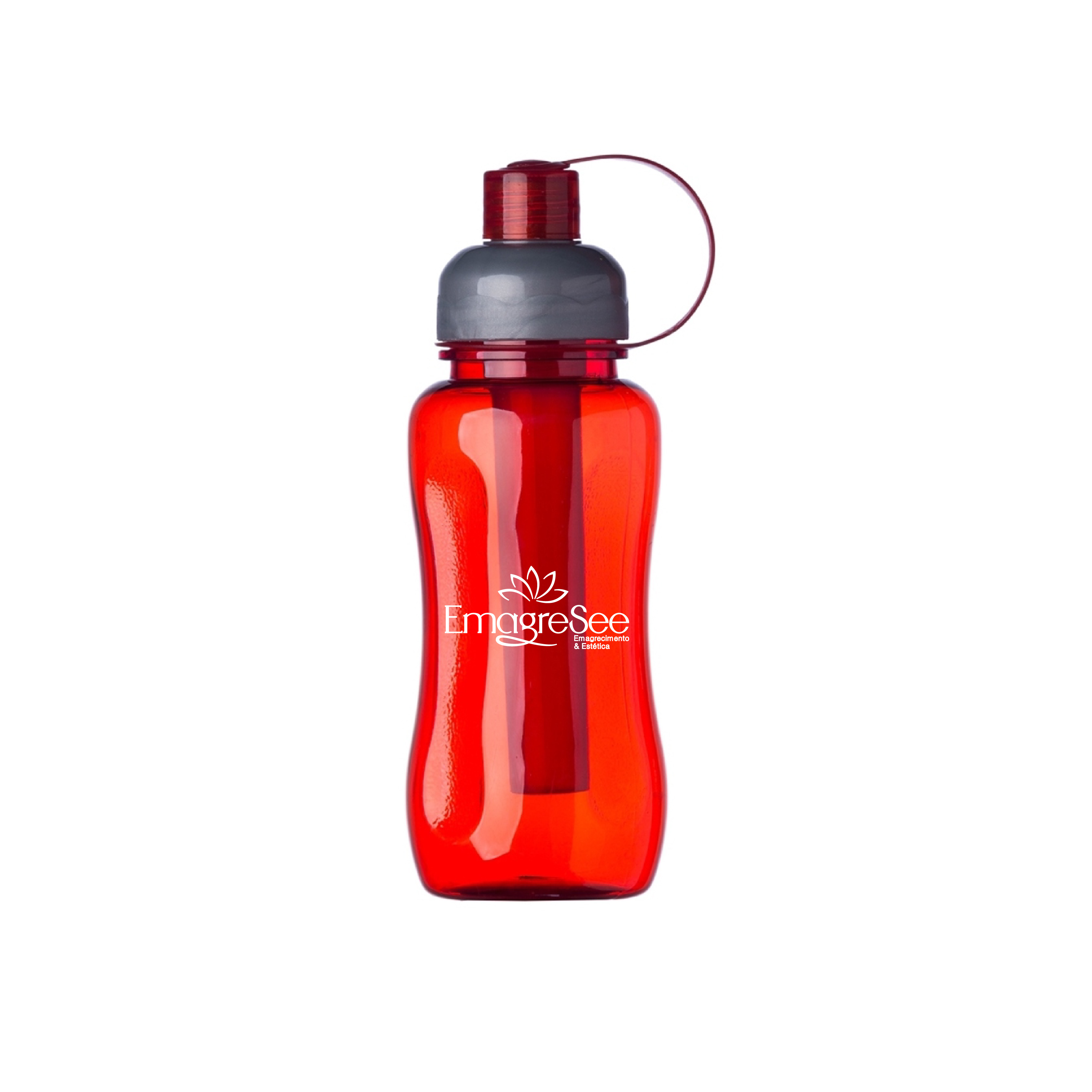 Squeeze plástico 600ml ice bar. Squeeze colorido acinturado com detalhe retangular texturizado nas laterais, possui tampa cinza com detalhe ondulado ao redor e tampa com alça para o bico. Parte interna possui uma barra congelante(desencaixe a barra da tampa), encha a barra e coloque no congelador/freezer para gelar e depois e só colocar novamente no squeeze.