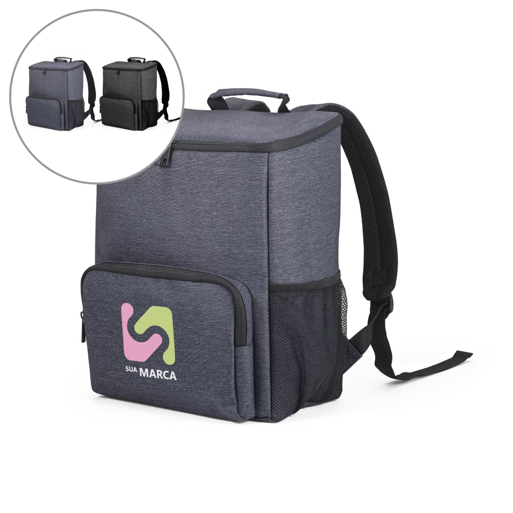 Mochila com isolamento térmico em Nylon 2Tone com interior forrado em PEVA para facilitar a higienização. Contém 1 compartimento principal, 1 bolso frontal com fecho e 1 bolso lateral em tela mesh. Possui um bolso com fecho principal duplo. As alças e as costas são almofadadas. A mochila tem capacidade até 15 L. Certificação EU Food Grade. 290 x 380 x 160 mm