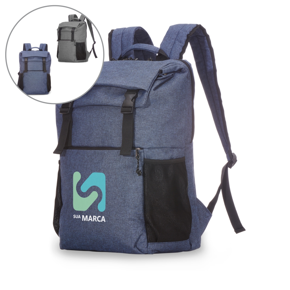 Compartimento principal medindo 50cm altura por 28cm de largura, com alça para ajuste de fechamento.