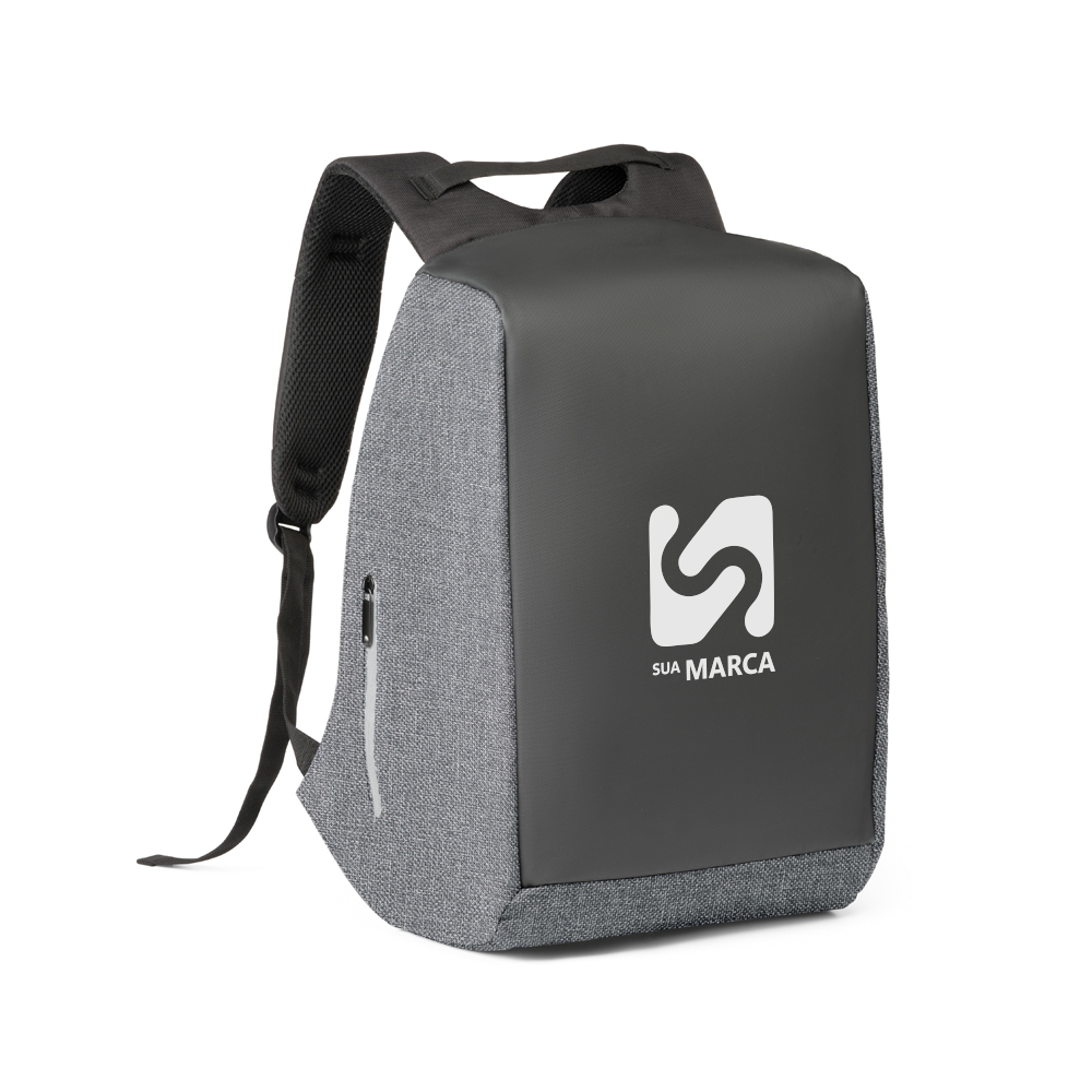 Mochila para notebook. 900D de alta densidade e tarpaulin. Sistema anti-roubo: compartimento principal com zíper oculto e parte posterior com 2 bolsos ocultos com zíper, para maior segurança. Compartimento principal forrado e almofadado, com 2 divisórias almofadadas para notebook até 15.6'' e tablet 10.5''. Diversos bolsos interiores, incluindo bolso almofadado para smartphone. Presilhas para organização de cabos no interior. Bolso lateral exterior com zíper, com acesso a bolso interior ideal para bateria portátil, facilitando o carregamento de diversos dispositivos. Parte posterior almofadada e sistema de apoio acolchoado para as costas. Alças almofadadas, com 1 bolso com zíper. 320 x 440 x 200 mm.