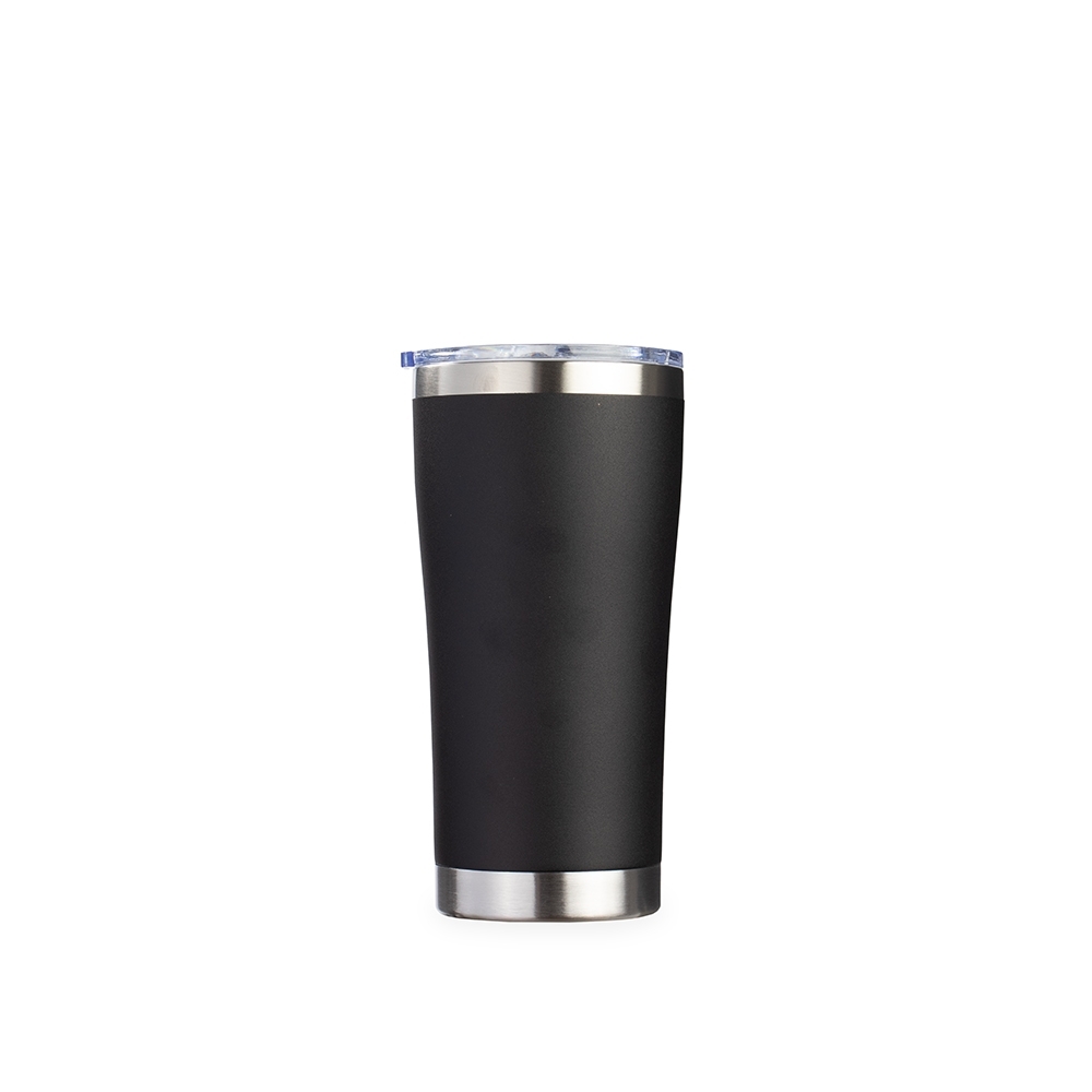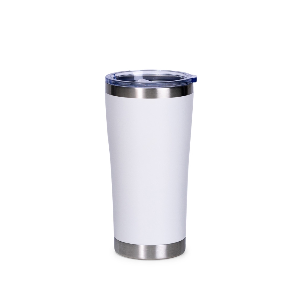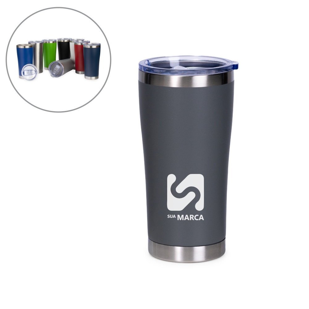 Copo térmico em aço inox 304, com capacidade máxima de 550 ml. Apresenta construção em parede dupla e tampa plástica de pressão, com sistema não rosqueável, proporcionando fechamento eficiente, dificultando vazamentos. Conta também com anel de vedação e protetor deslizante para o bocal, que contribuem para a qualidade da bebida.