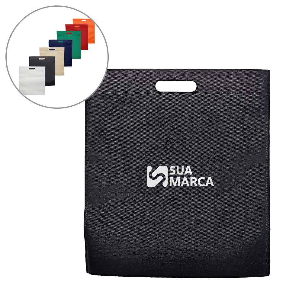 Sacola TNT com pegador e base expansível de 8cm deixando seu espaço interno ainda maior.