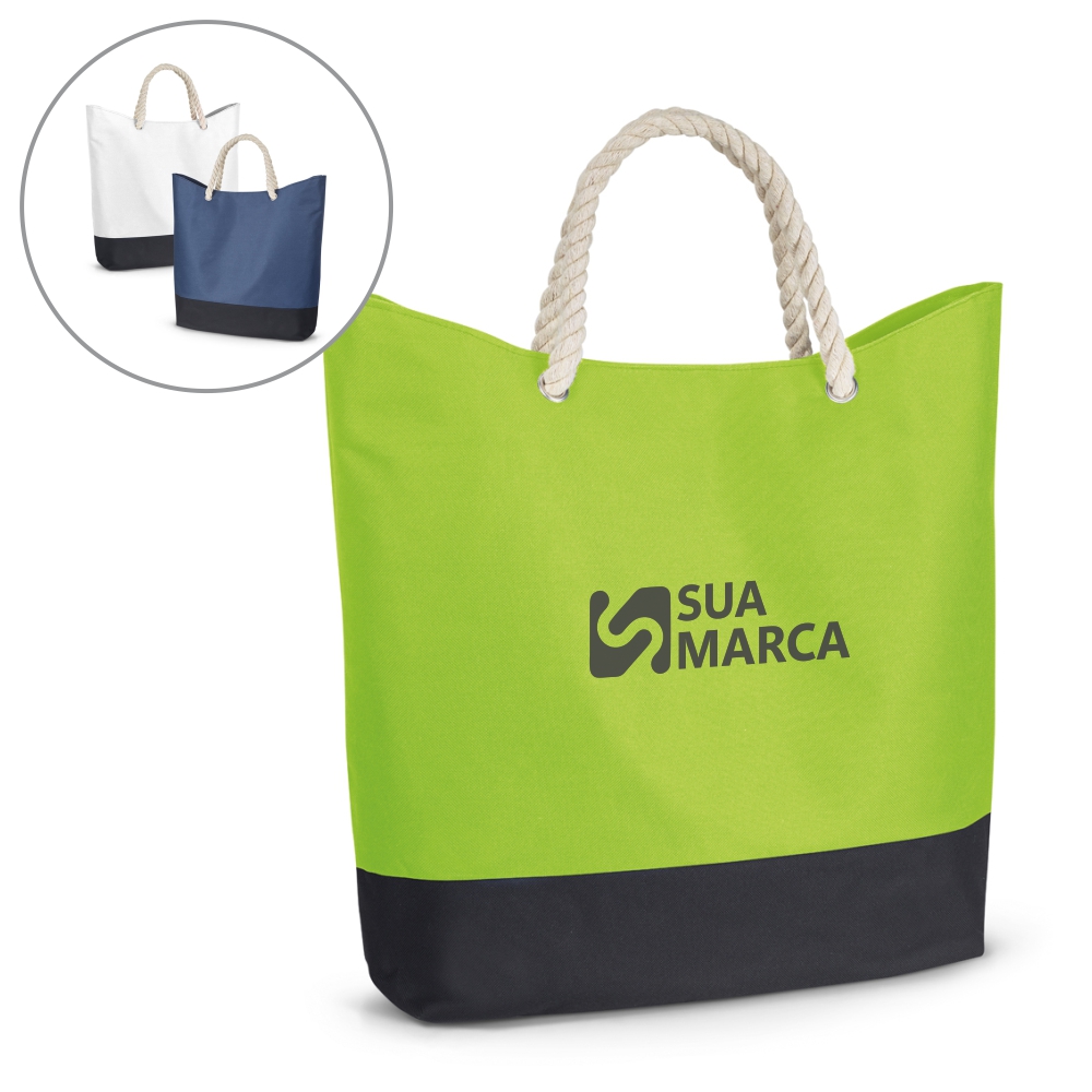 Sacola de praia. 600D. Alça de corda em algodão. 510 x 440 x 140 mm.