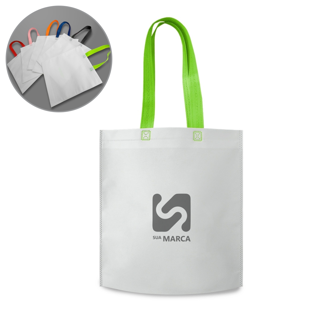 Descrição: Sacola confeccionada em TNT biodegradável com estrutura termosselada que oferece maior resistência e segurança durante o uso.