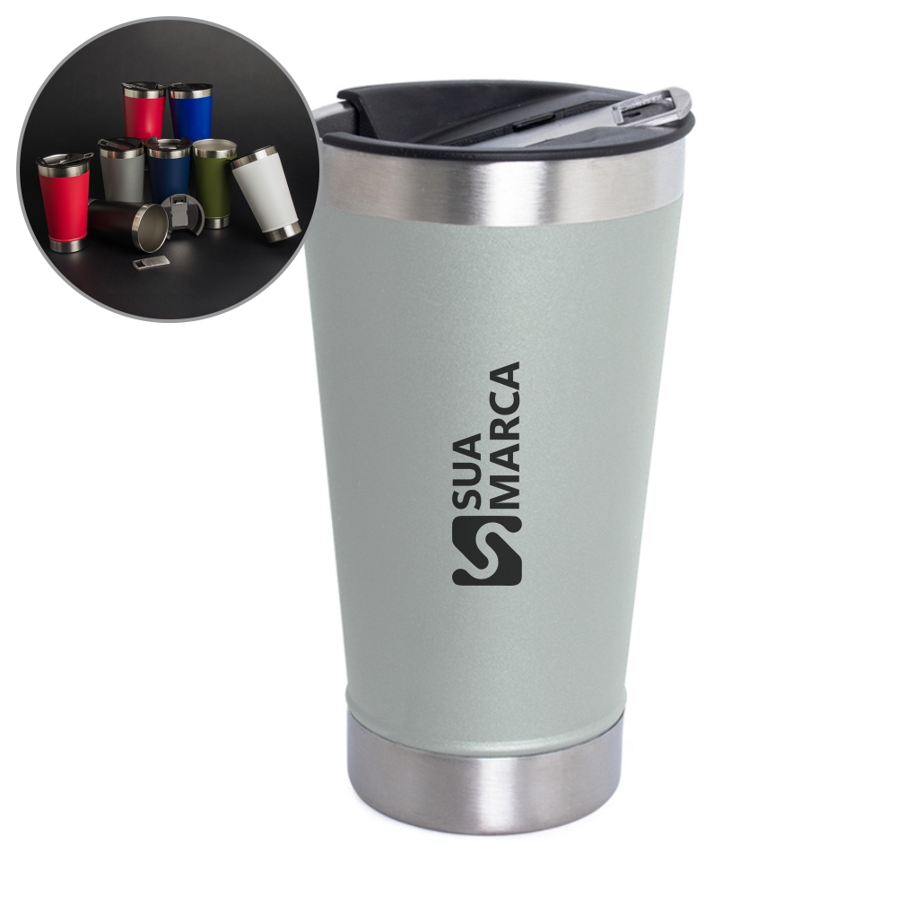 Descrição: Copo térmico de inox com acabamento liso e capacidade 500ml, material livre de BPA. Contém tampa com abridor.